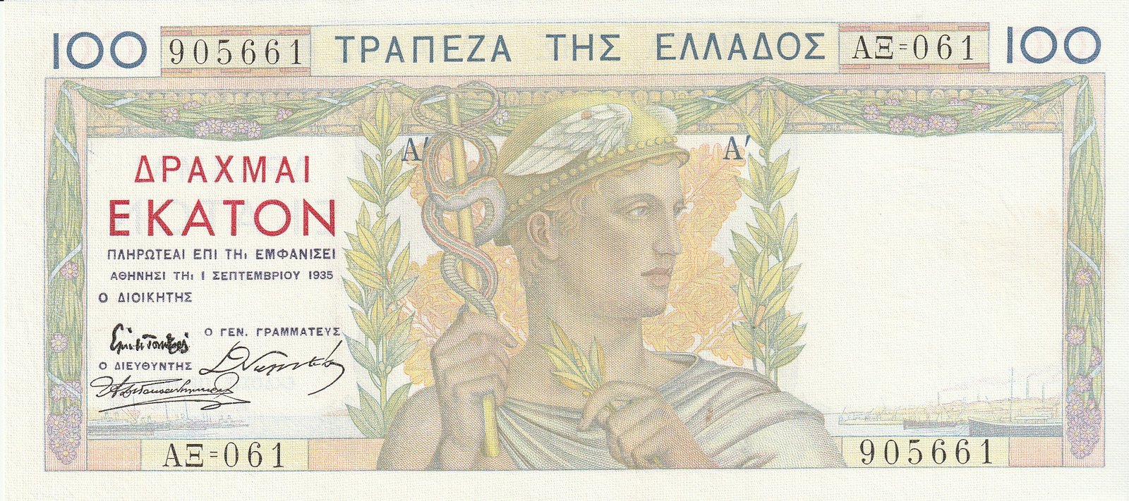 Grecia GRE-P-105, 100 Drachmai, 1935, Nº 905661, Look Scand, UNC