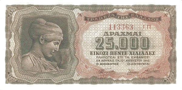 Grecia GRE-P-123a(3), 25.000 Drachmai, 1943, UNC