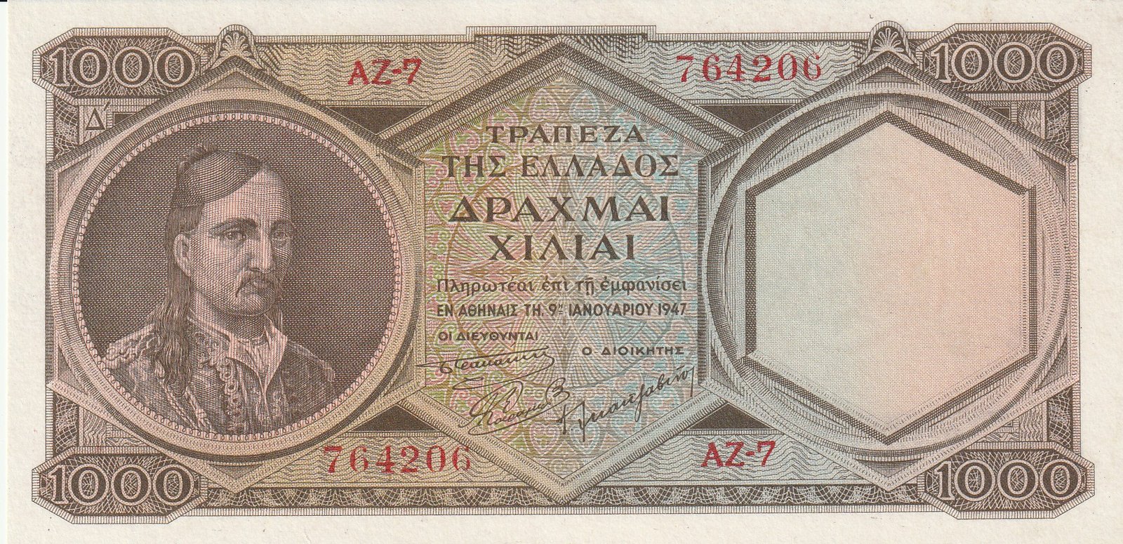 Grecia GRE-P-180, 1.000 Drachmai, 1947, Nº 764206, Look Scand, XF