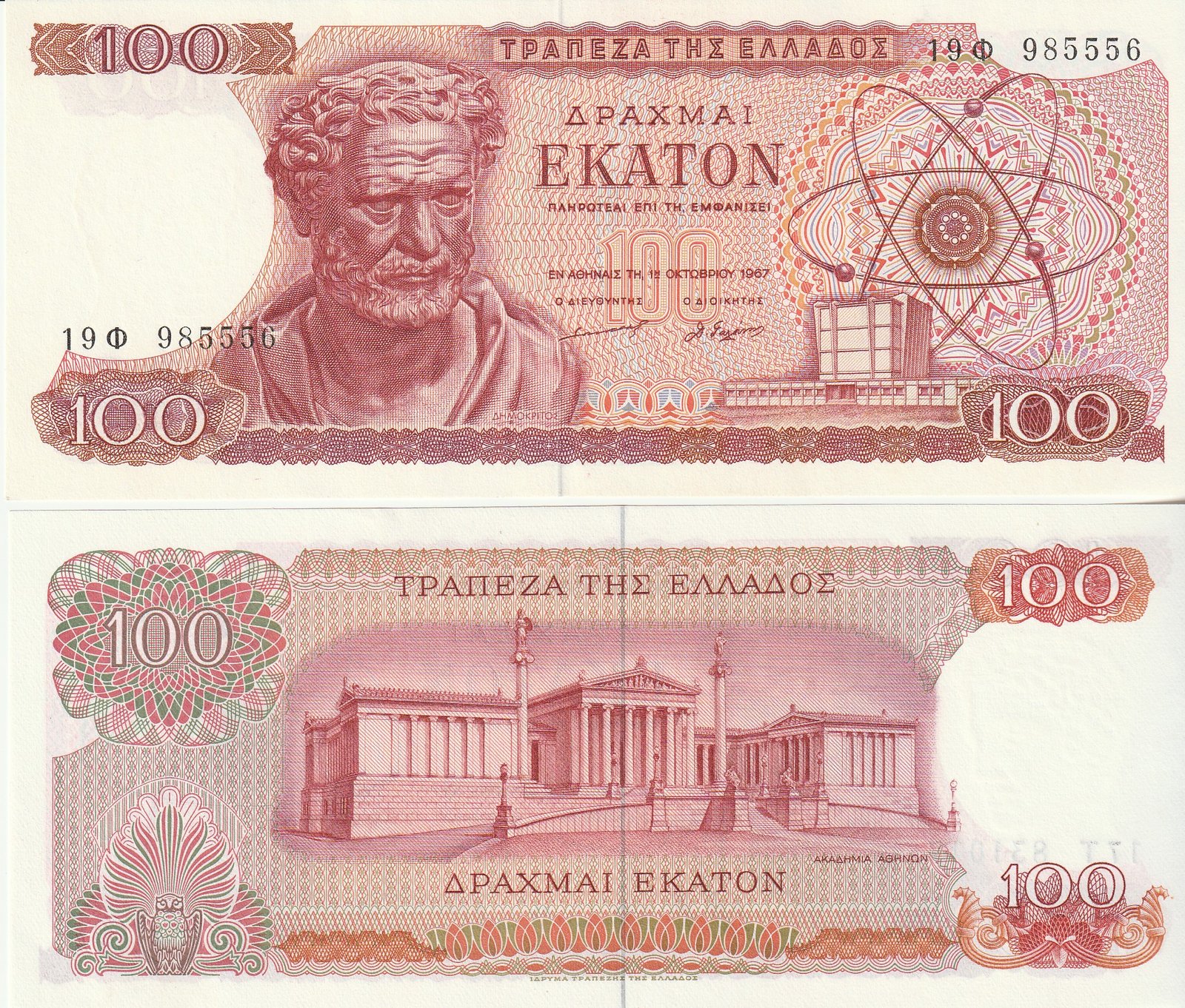 Grecia GRE-P-196b, 100 Drachmai, 1967, UNC