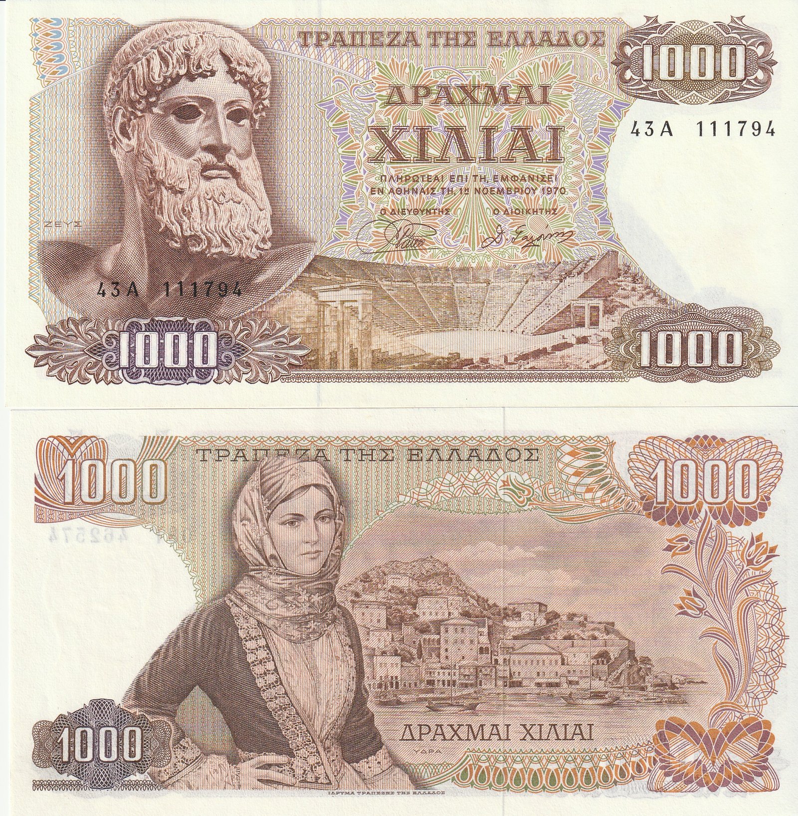 Grecia GRE-P-198b(1), 1.000 Drachmai, 1970, UNC