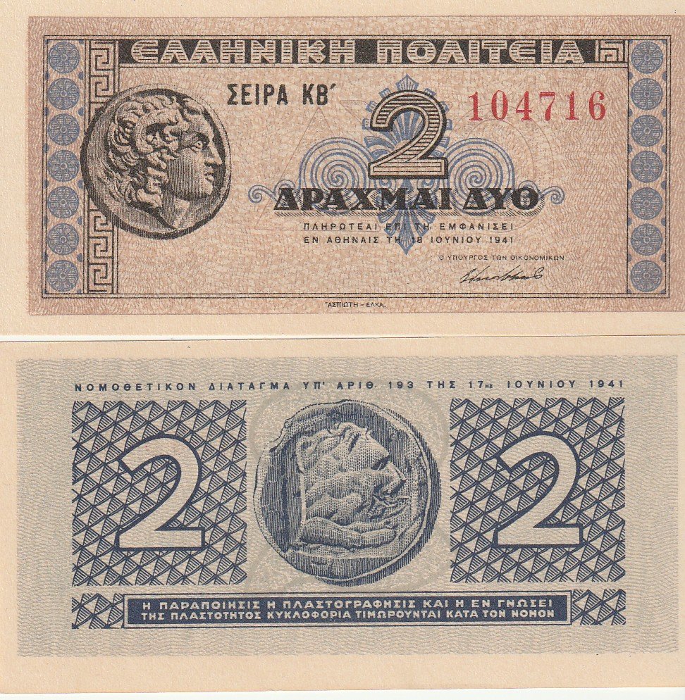Grecia GRE-P-318, 2 Drachmai, 1941, UNC