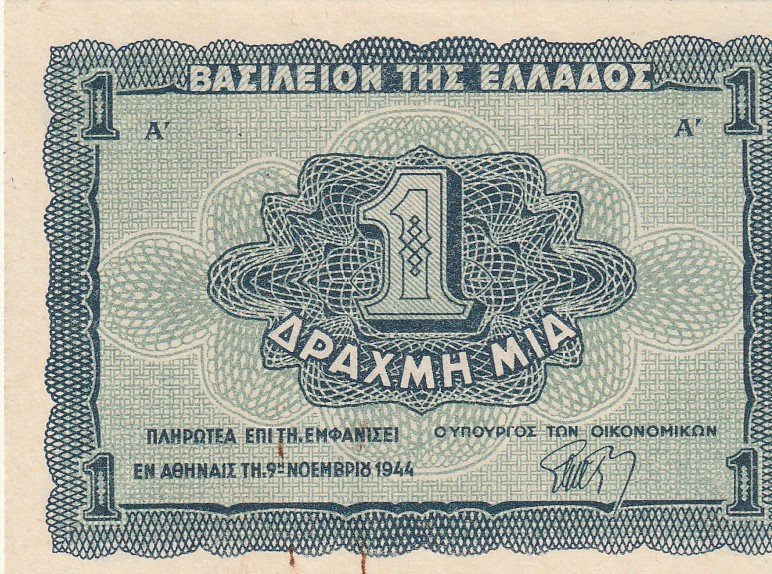 Grecia GRE-P-320, 1 Drachma, 1944, Look Scand, aUNC