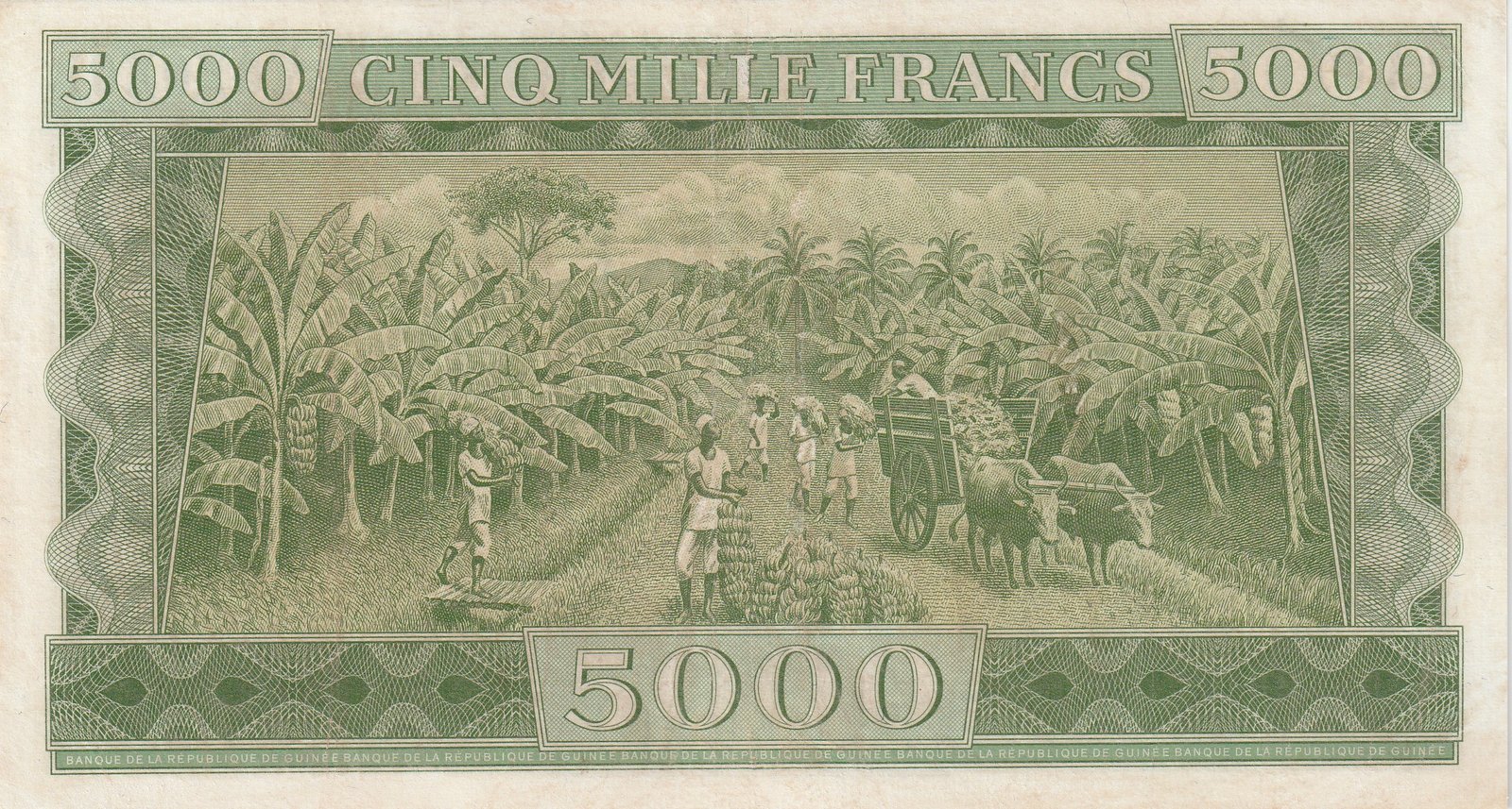 Guinea GUI-P-10, 5.000 Fcos., 1958, Nº 009319, Look Scand, XF