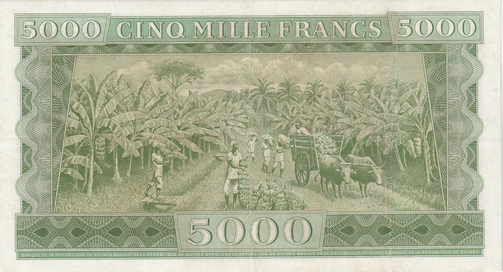 Guinea GUI-P-10, 5.000 Fcos., 1958, Nº 009319, Look Scand, XF