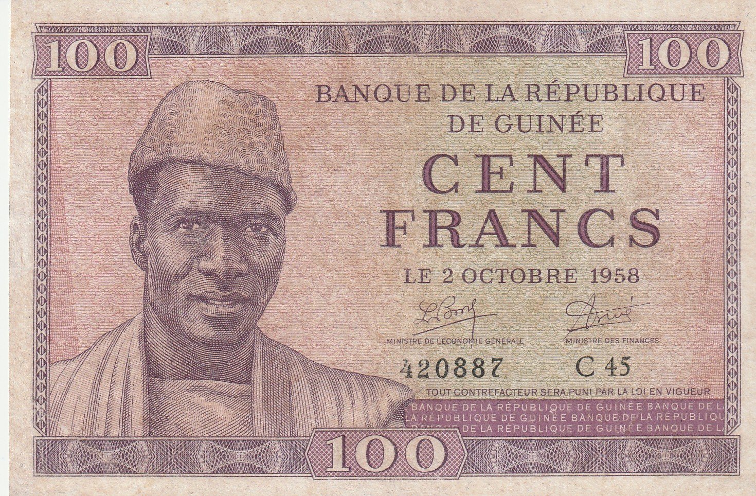 Guinea GUI-P-7, 100 Fcos., 1958, Nº 420887, Look Scand, Very Fine ++