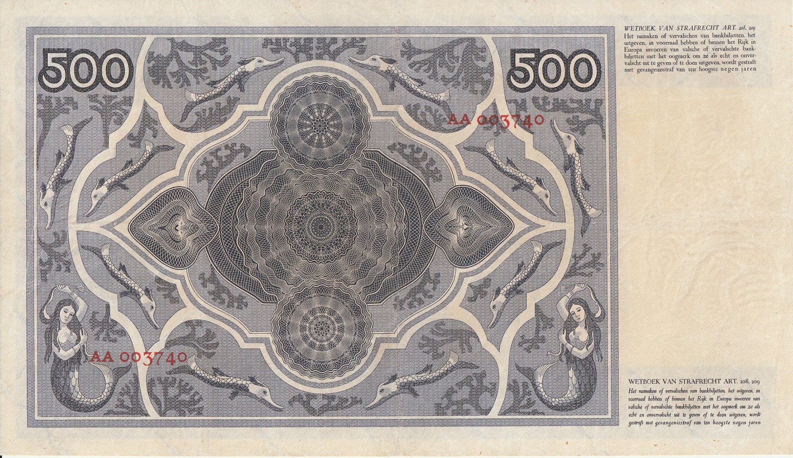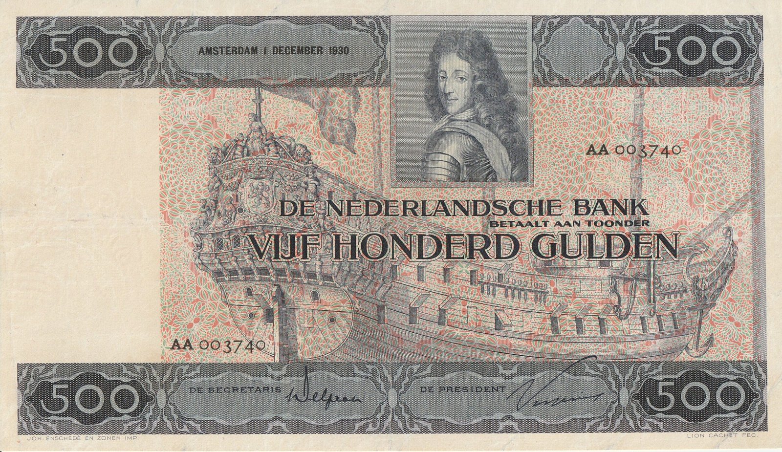 Holanda- NET-P-52(1), 500 Gulden, 1-Diciembre-1930, Nº.- AA-003740, Look Scand, XF+