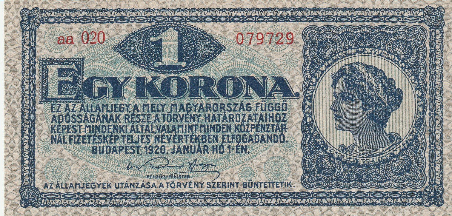 Hungría HGR-P-57, 1 Korona, 1920, UNC