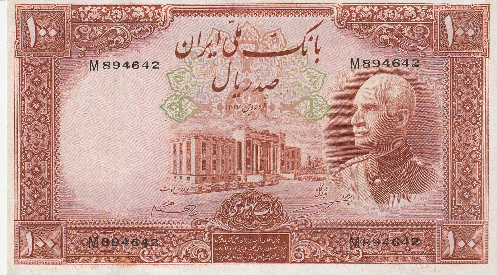 Irán, IRN-P-36Aa, SH-1317, 100 Riales, Nº M894642, Look Scand, Very Fine+