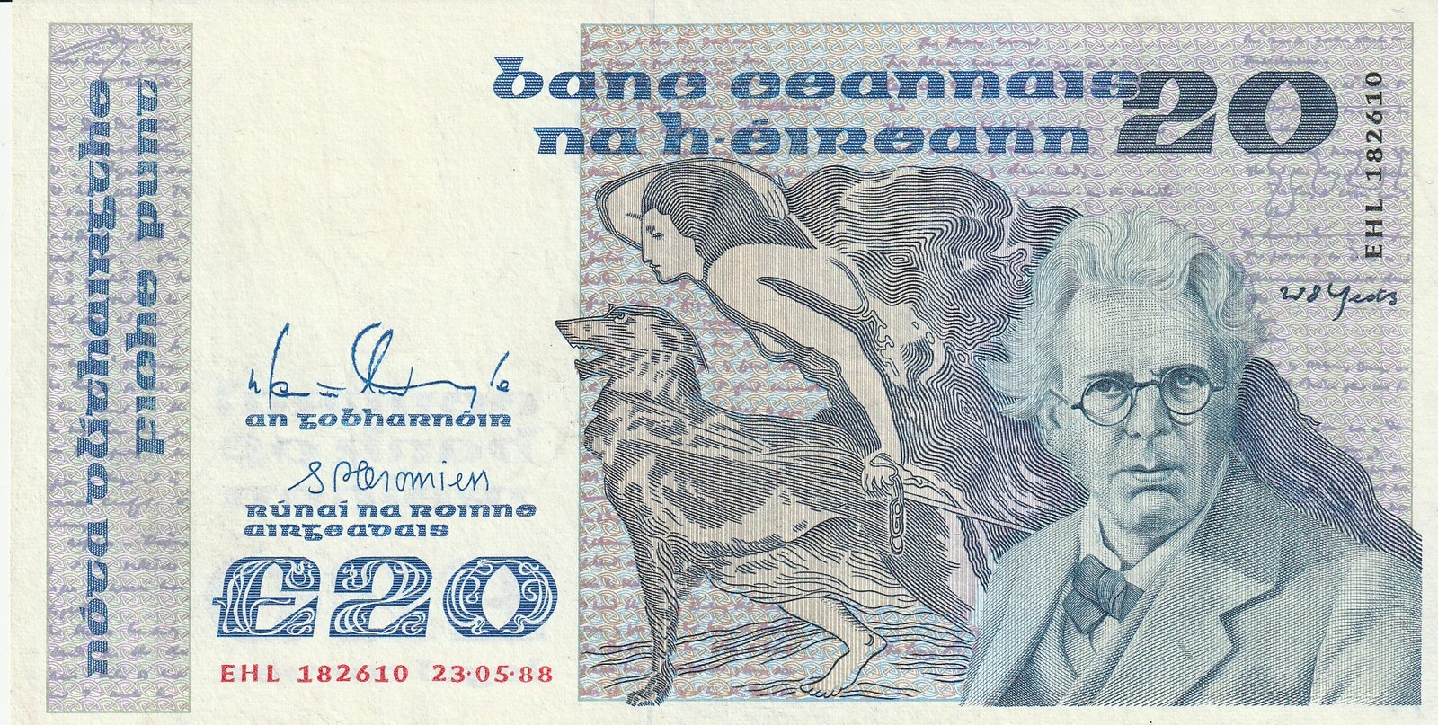 Irlanda IRE-P-73c, 20 Pounds, Nº.- EHL182610, 23-5-1988, XF+