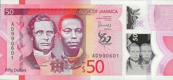 Jamaica JAM-P-W96, 50$, 2023, 60 Aniv. Independencia, Polímero, UNC