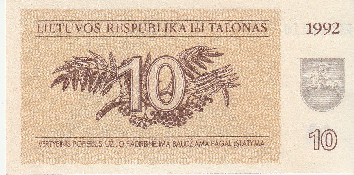 Lithuania LTH-P-40, 10 Talonas, 1992, UNC