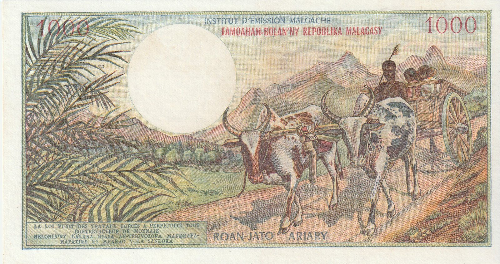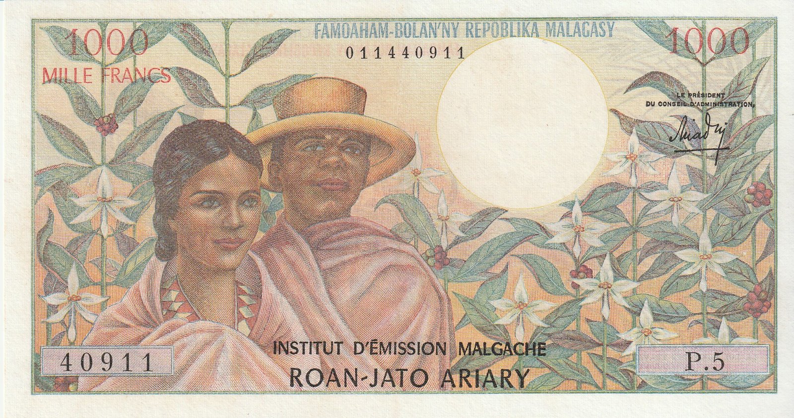 Madagascar MDG-P-59, 1.000 Fcos., ND-1966, Nº.-011440911, Look Scand, XF