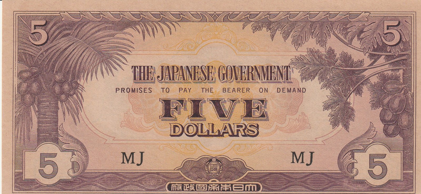 Malaya MLY-P-M6b, 5$, ND-1942, Look Scand, UNC