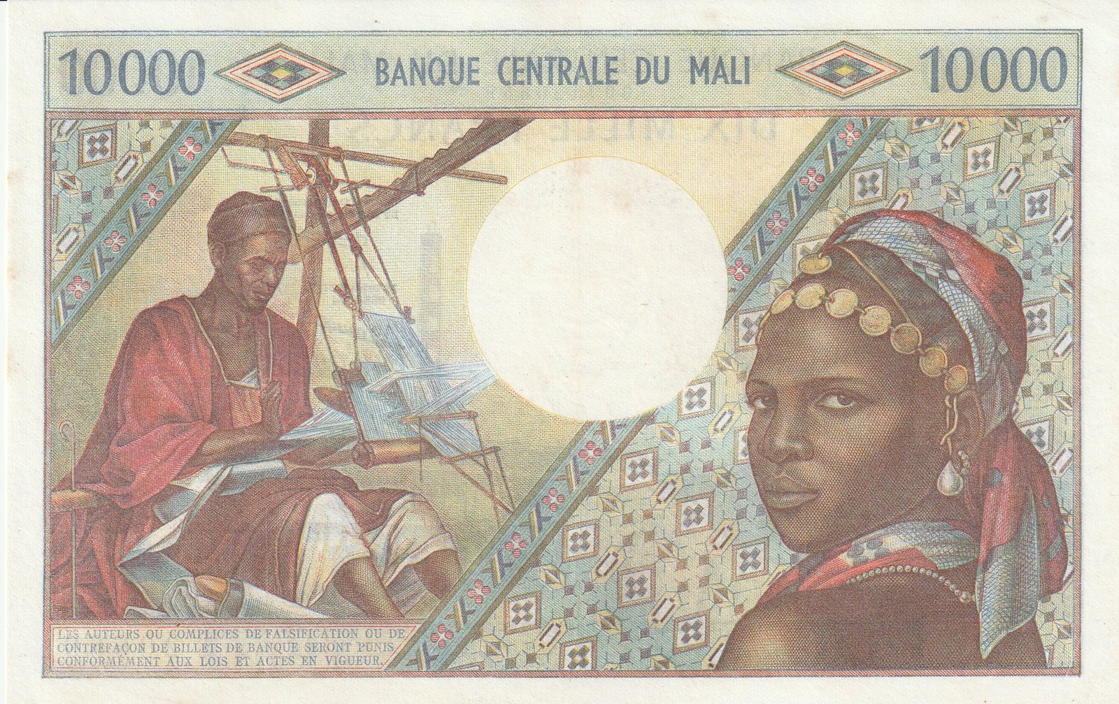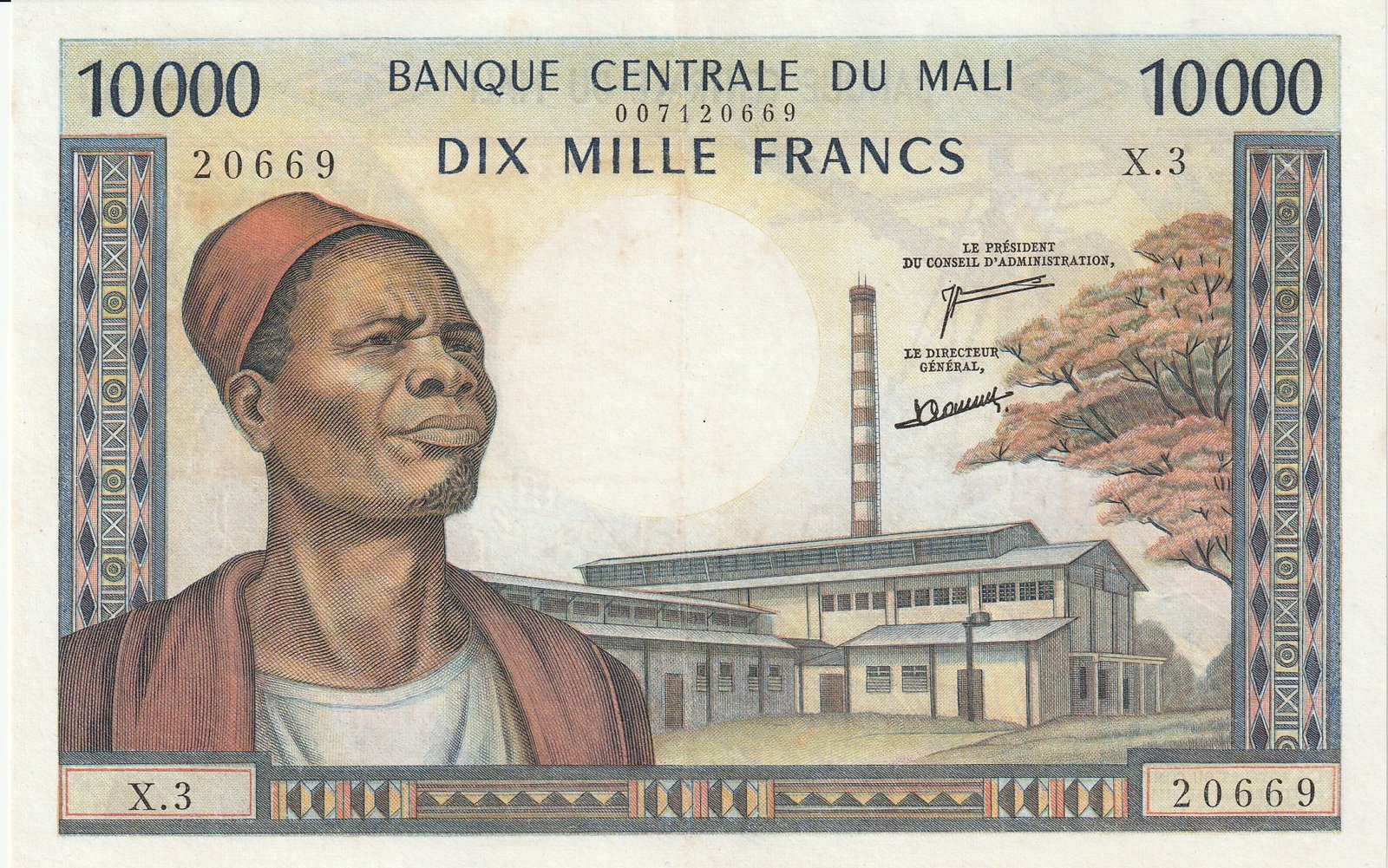 Malí MLI-P-15e, 10.000 Fcos., Nº.- 007120669, ND-1970/84, Look Scand, XF-