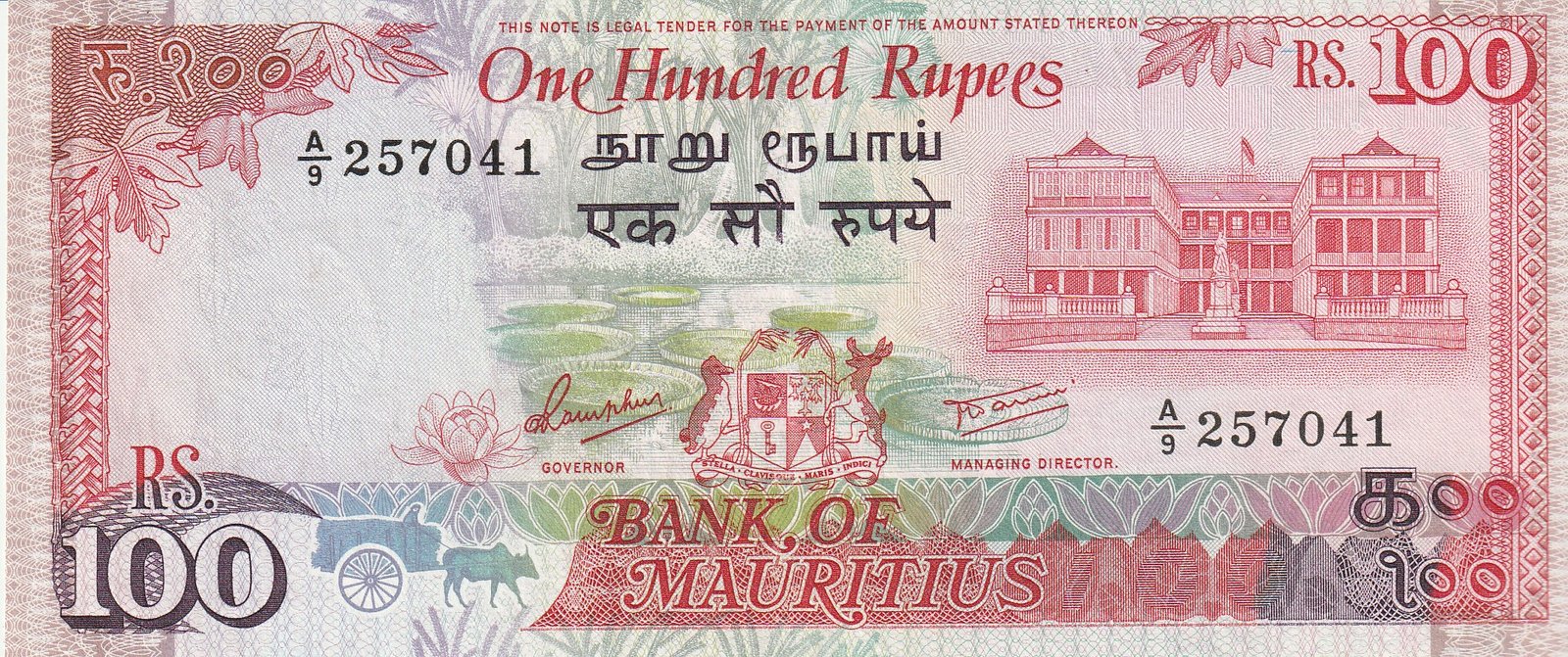 Mauricios MUR-P-38, 100 Rupiees, ND-1986, Look Scand, XF
