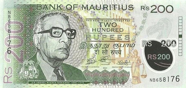 Mauricios MUR-P-W65B, 200 Rupees, 2024, Polímero, UNC