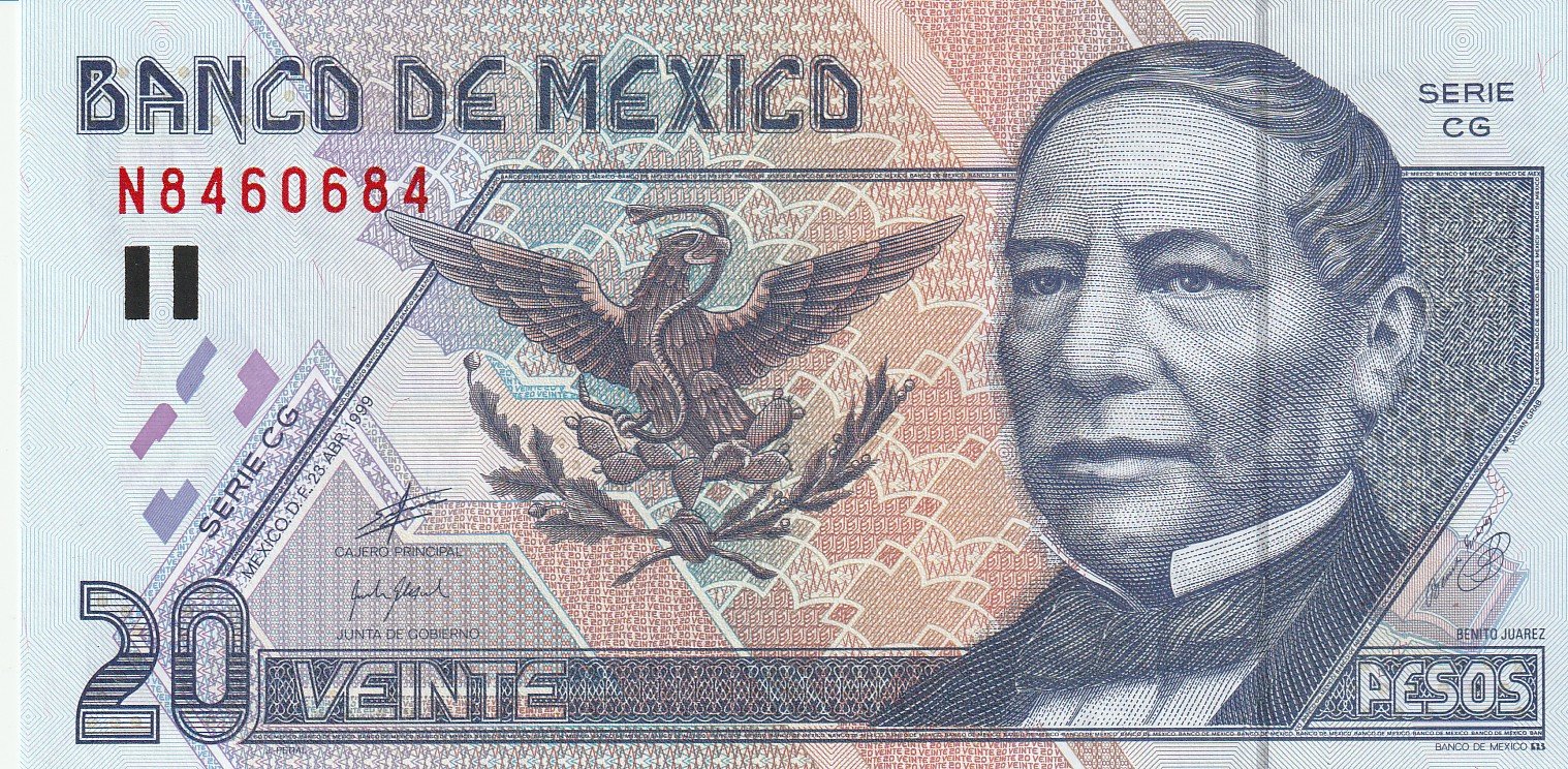 México MEX-P-106d(CG), 20 Pesos, 23-Abril-1999, Benito Juárez, UNC