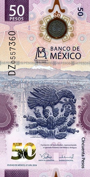 México MEX-P-W138(4), 50 Pesos, 27-Junio-2024, sign: Victoria Rodríguez Ceja & Isabel Morales Pasantes, Polímero, UNC