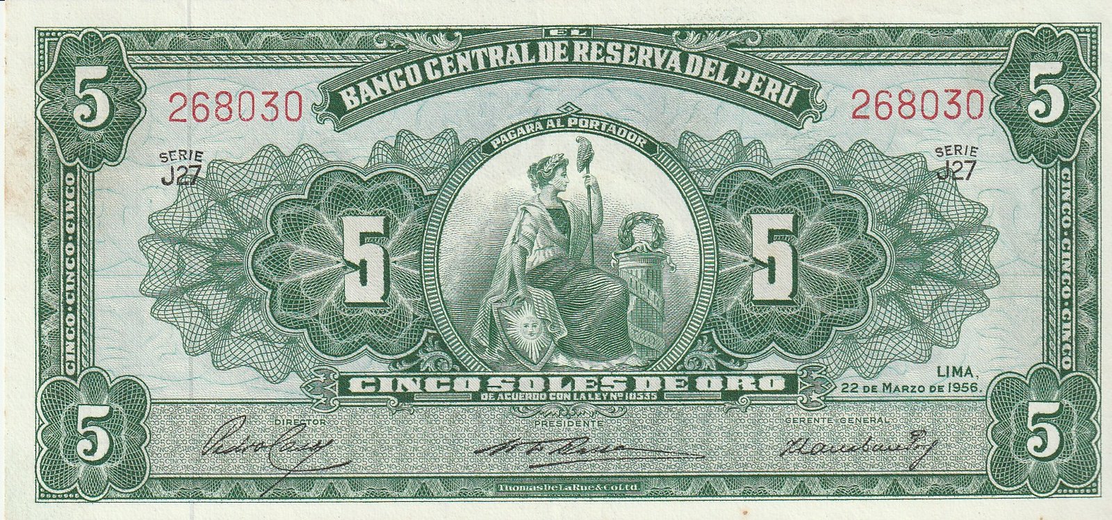 Perú PER-P-76, 5 Soles, 22-Marzo-1958, Look Scand, aUNC