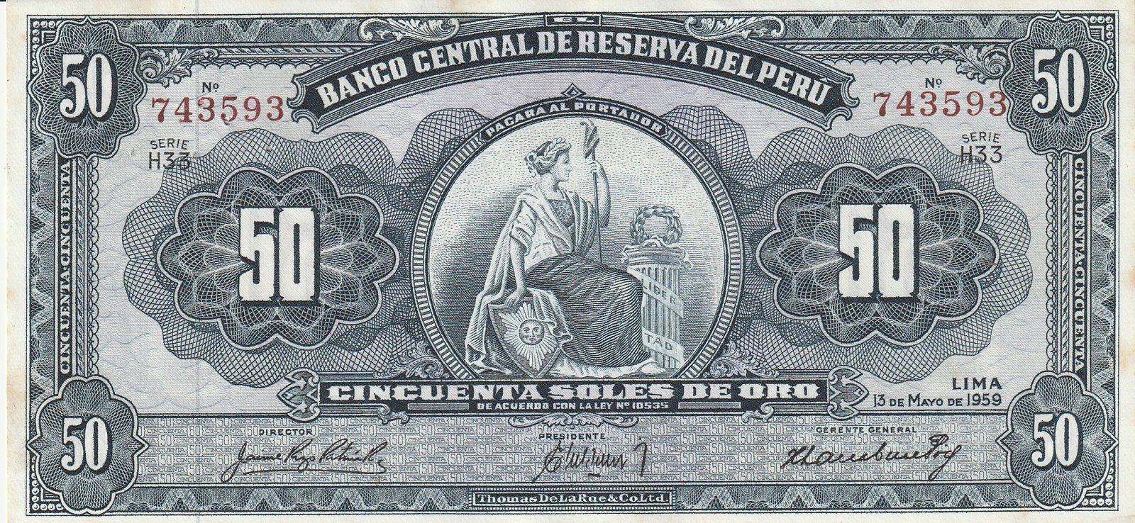 Perú PER-P-78a(59), 50 Soles, 1959, Nº 743593, Look Scand, XF/Ph