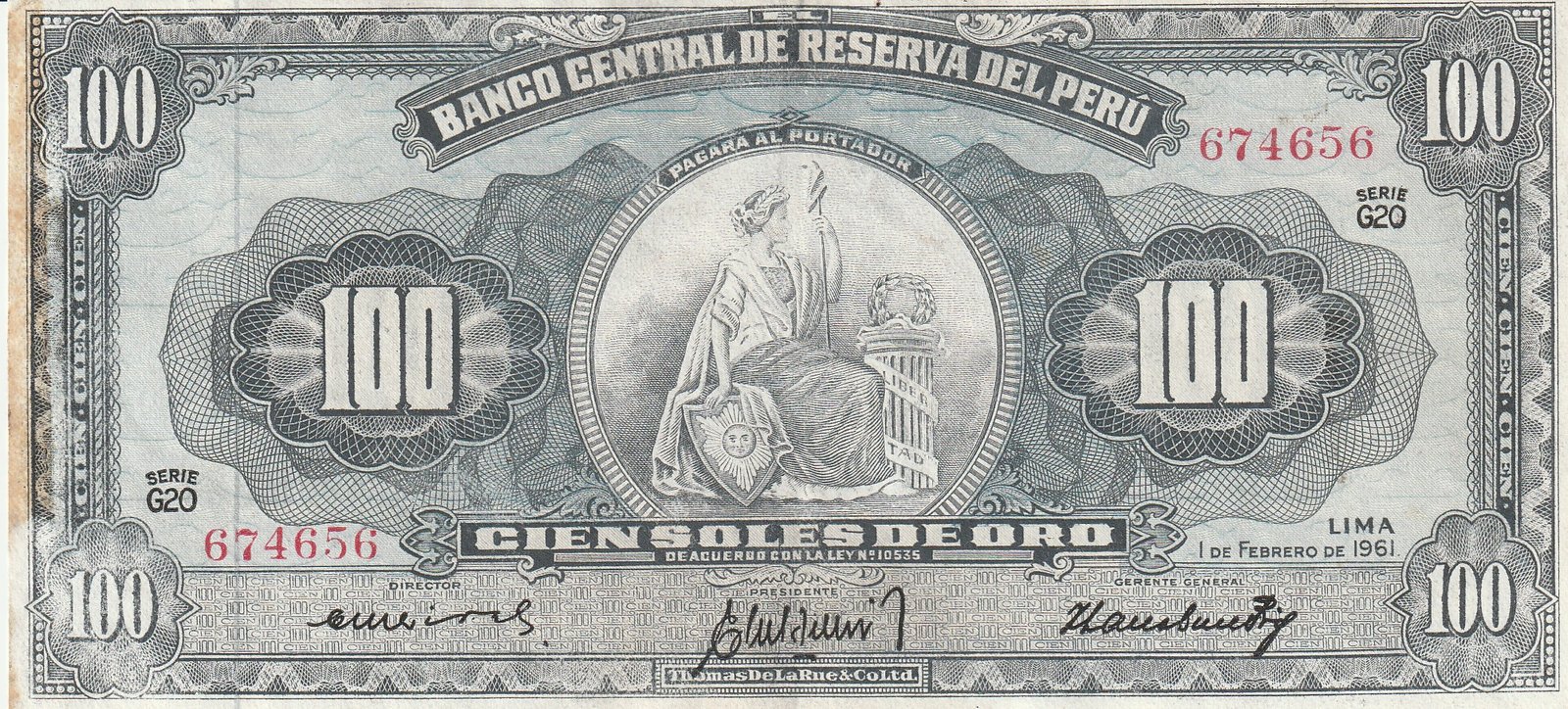 Perú PER-P-79c, 100 Soles, 1961, Nº 674656, Look Scand, Very Fine++