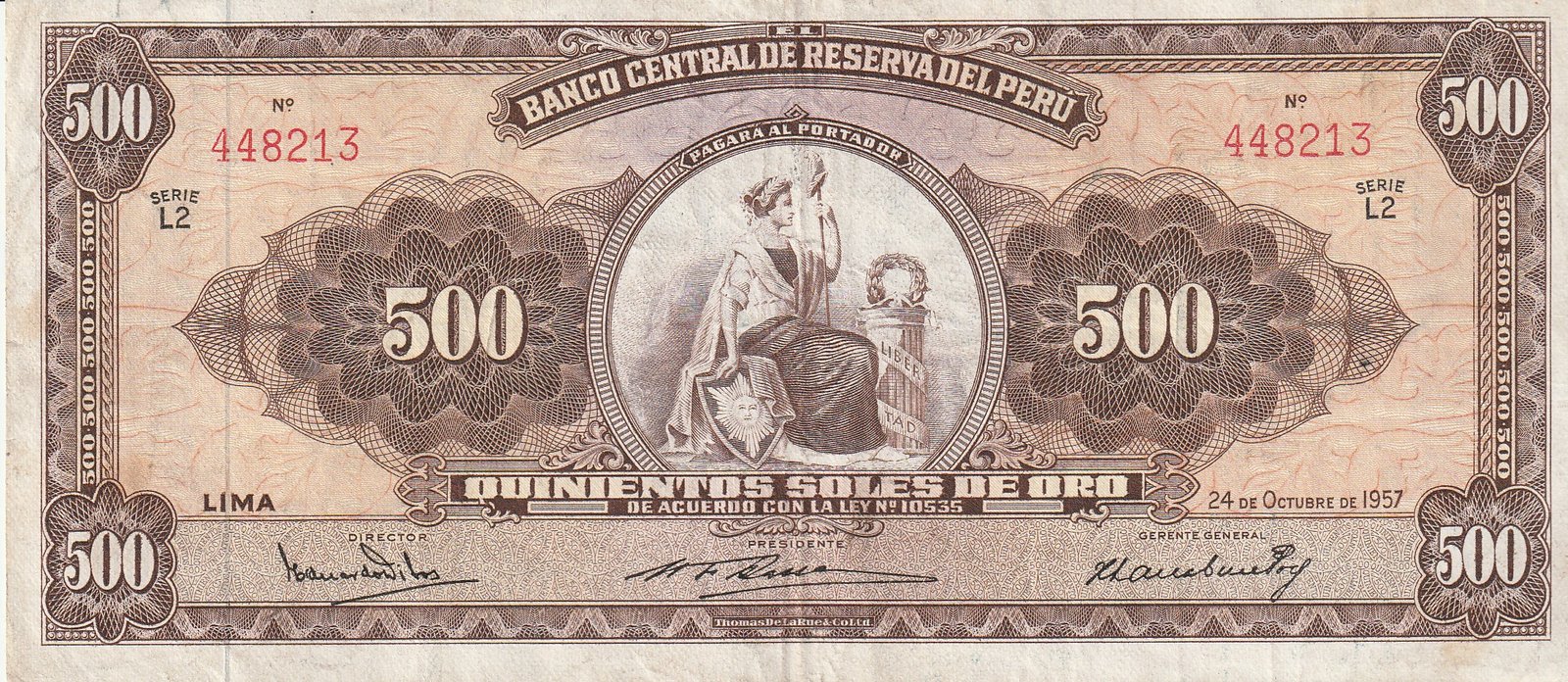 Perú PER-P-80a(57), 500 Soles, 1957, Look Scand, Very Fine+++