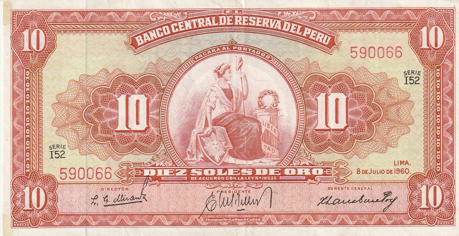 Perú PER-P-82A, 10 Soles, 1960, Nº 590066, Look Scand, Very, Fine+