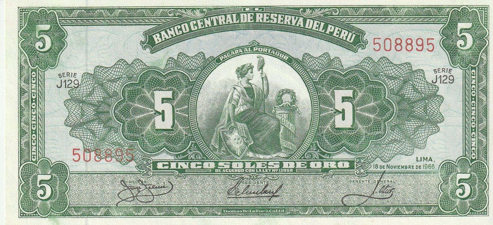 Perú PER-P-83(66), 5 Soles, 18-Noviembre-.1966, Look Scand, aUNC