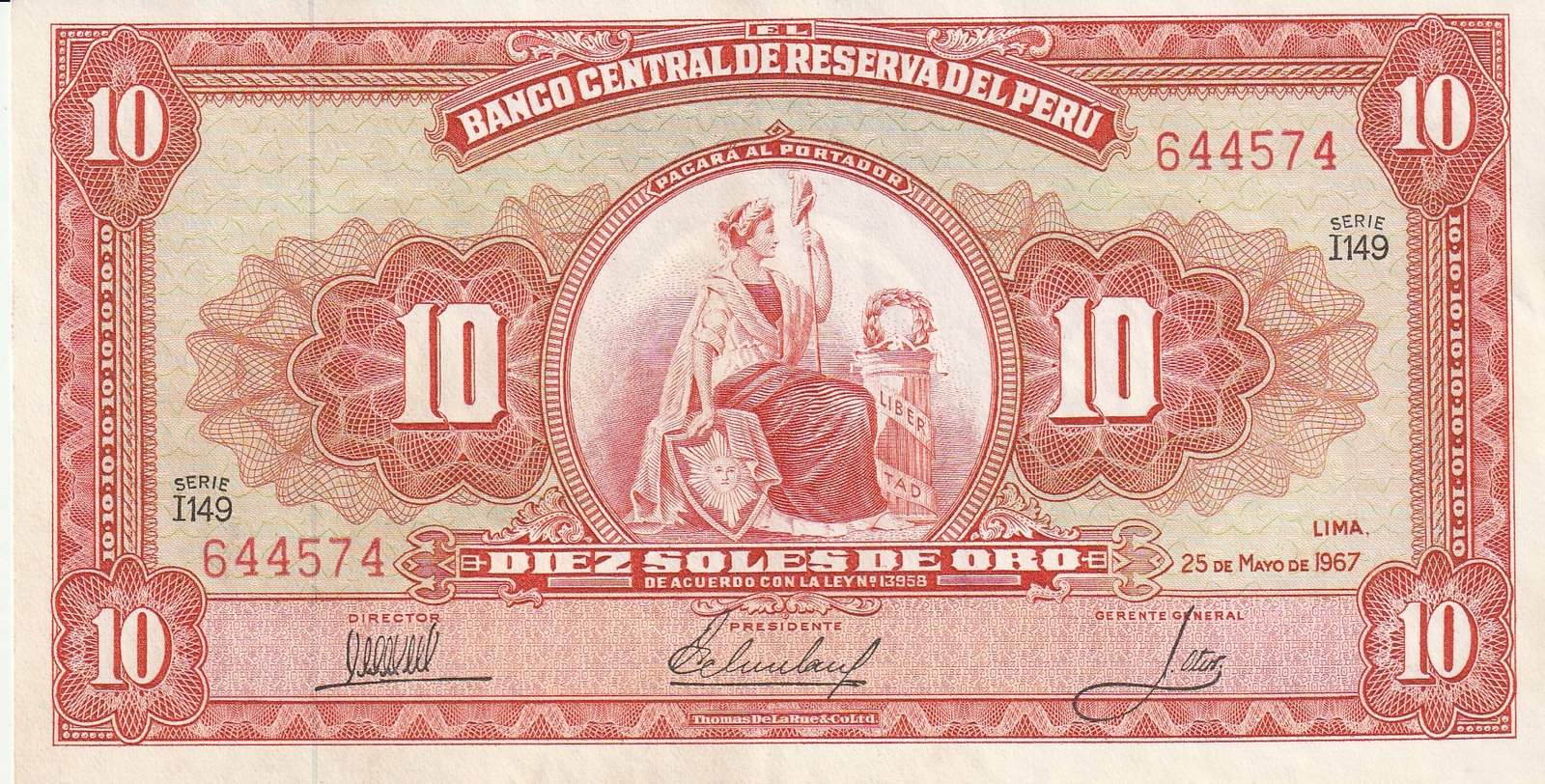 Perú PER-P-84a(67), 10 Soles, 1967, Nº 644574, Look Scand, XF