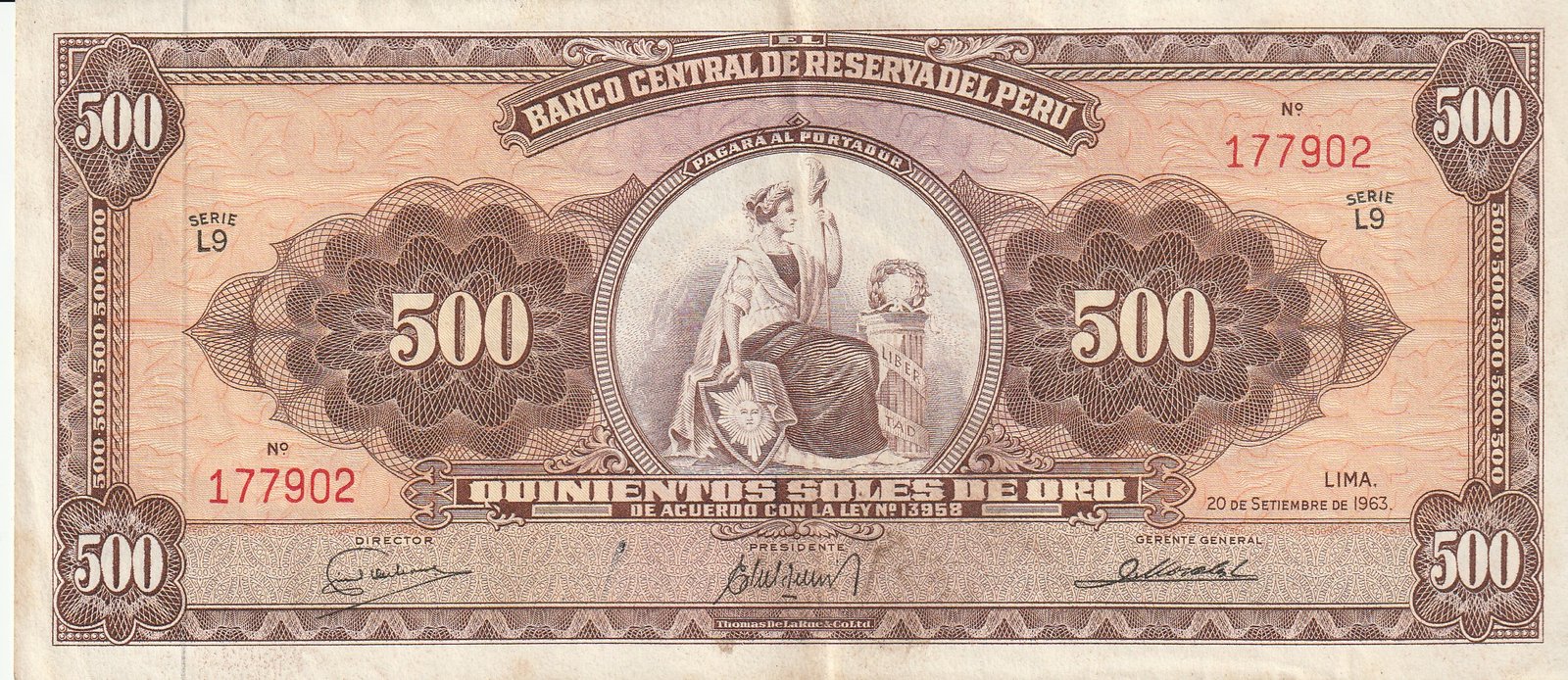 Perú PER-P-87a(63), 500 Soles, 1963, Nº 177902, Look Scand, Very Fine+++