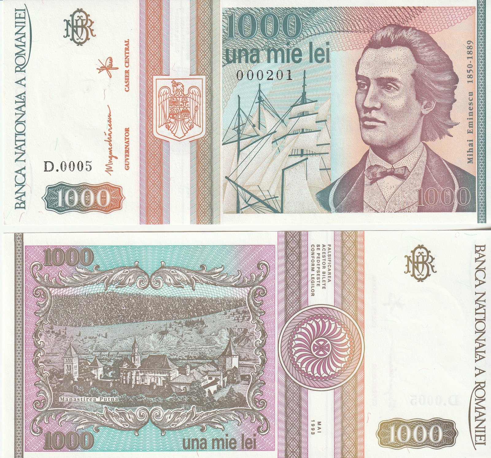 Rumanía ROM-P-102, 1.000 Lei, 1983, Mihai Eminescu, UNC