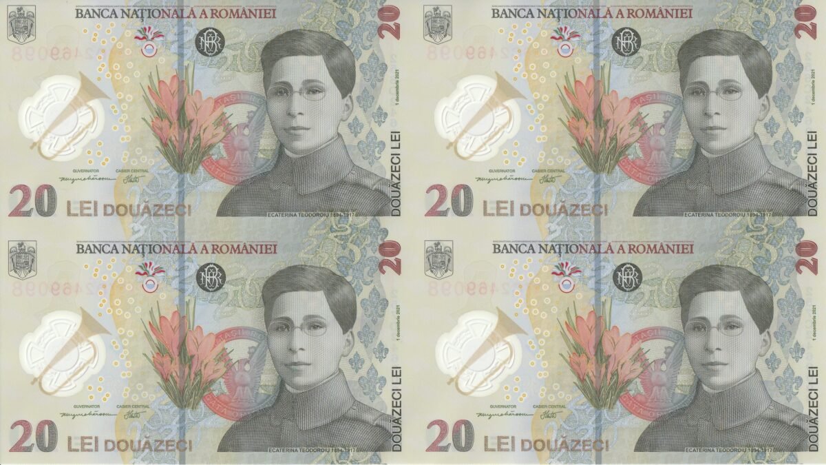Rumanía ROM-P-W119A, 20 x 4 Lei, 1-Diciembre-2021(25), Ecaterina Teodoroiu, Polímero, Bloque de cuatro tirada especial con certificado, Polímero, UNC