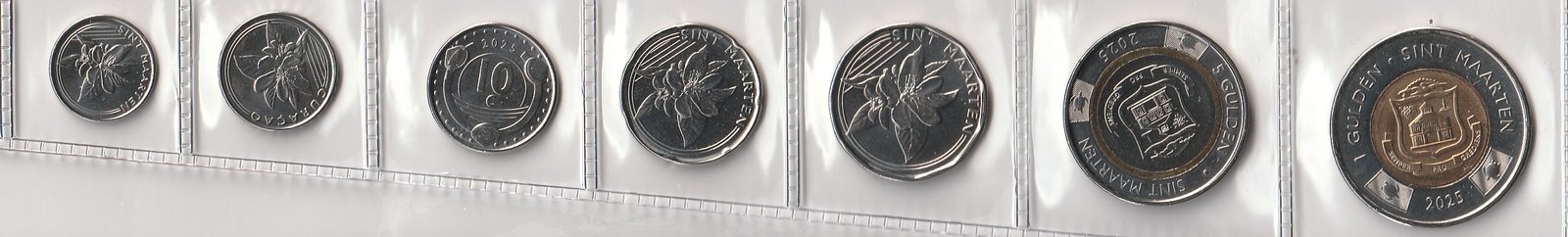 Sant Maarten, Set 7 valores, 2025, 1 y 5 Gulden bimetálicas, UNC