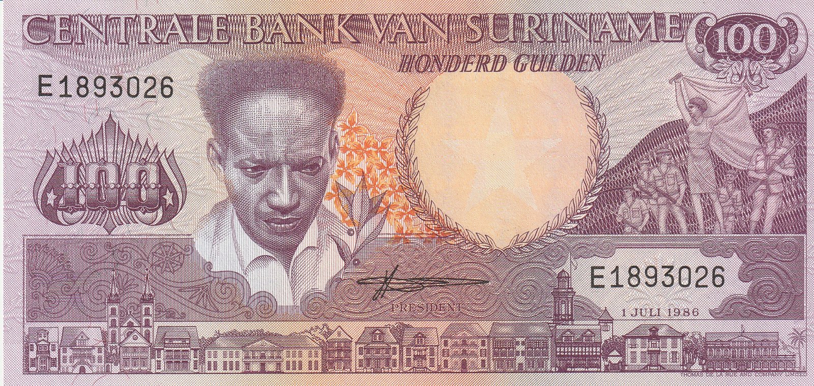 Suriname SRM-P-133a(1), 100 Gulden, 1986, UNC