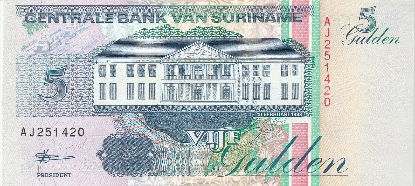 Suriname SRM-P-136b.3, 5 Gulden, 10-2-1998, UNC