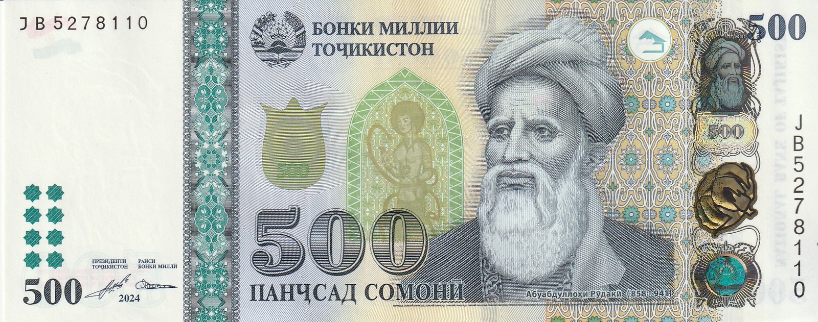 Tajikistán TJK-P-22(24), 500 Somoni, 2024, UNC