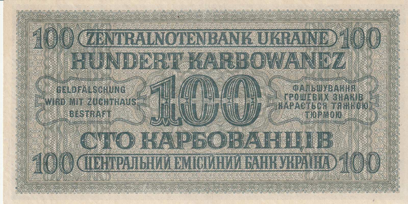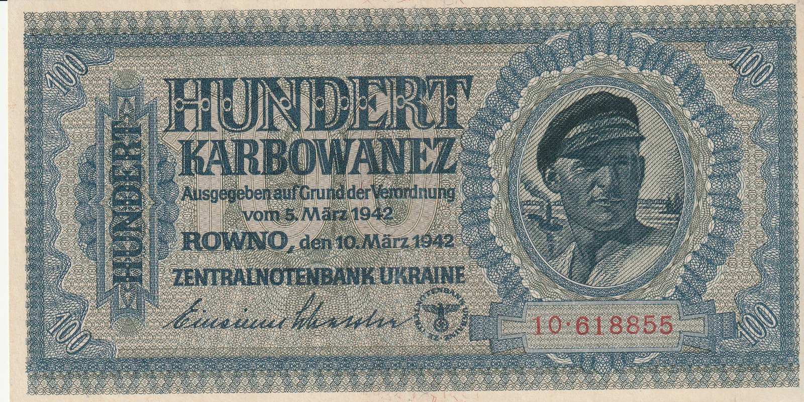 Ucrania, UKR-P-55, 100 Karbowanez, 1942, Nº 10-618855, Look Scand, aUNC