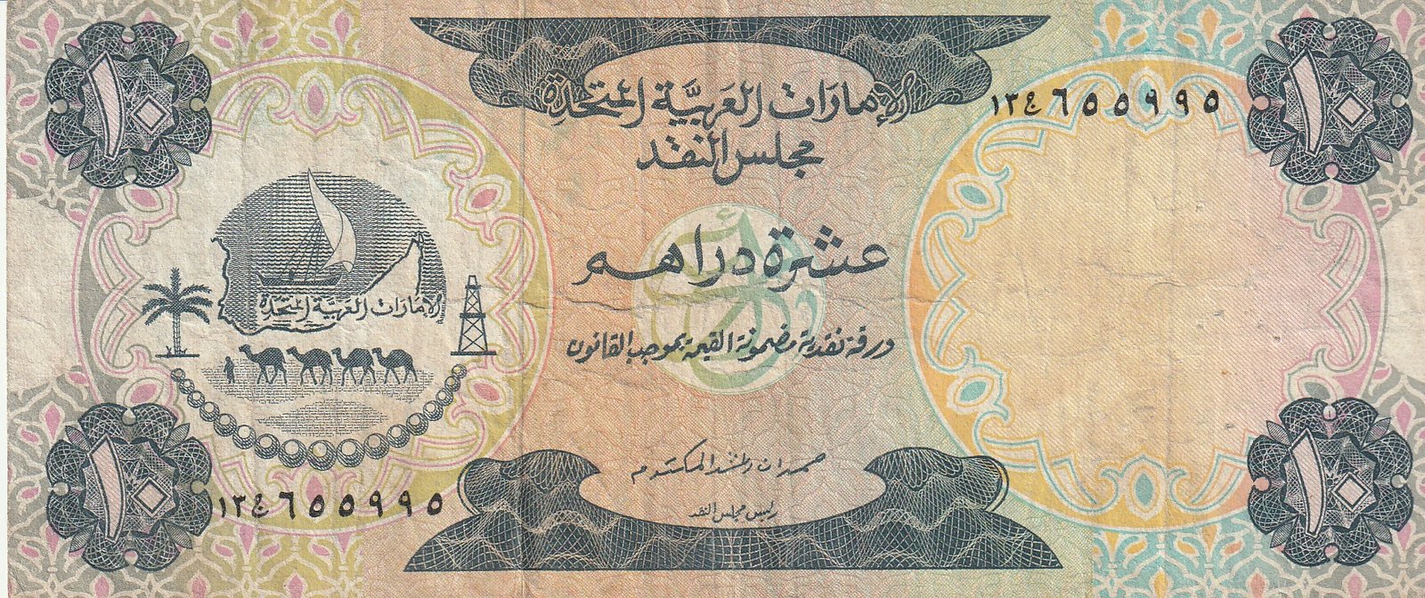 United Arab Emirates UAE-P-3, 5 Dirham, ND-1973, Look Scand, Fine
