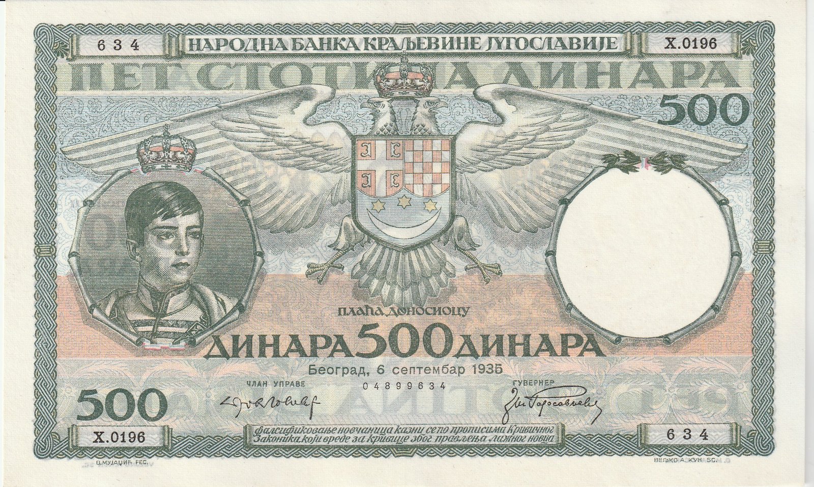 Yugoslavia YGL-P-32, 500 Dinara, 1935, Nº 04899634, Look Scand, aUNC