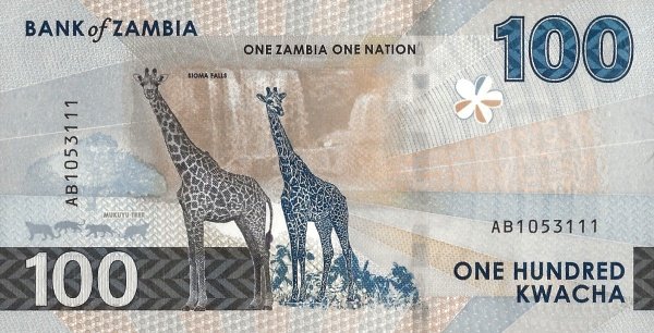 Zambia ZMB-P-W65, 100 Kwacha, 2024, Halcón/Pareja Jirafas, UNC